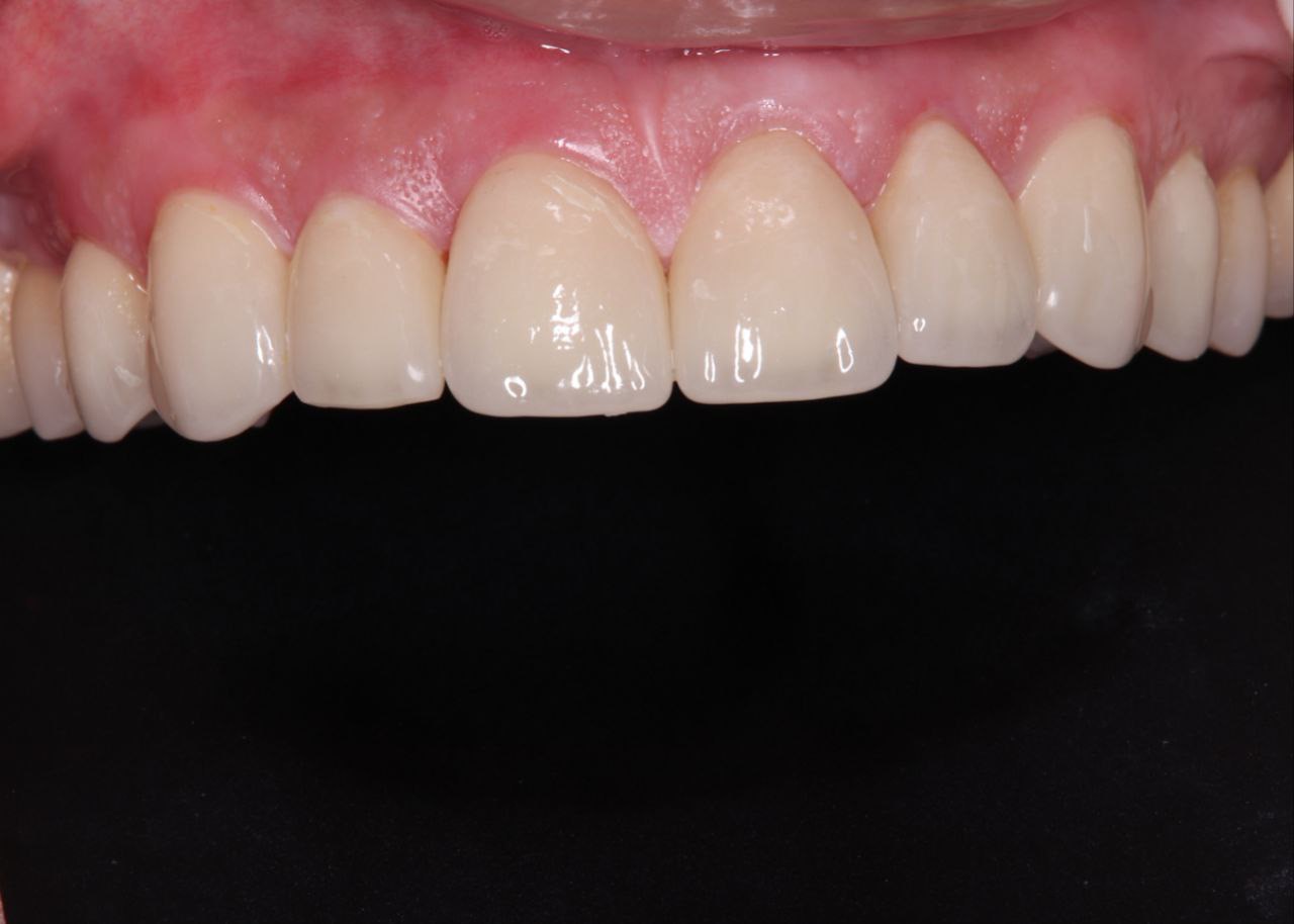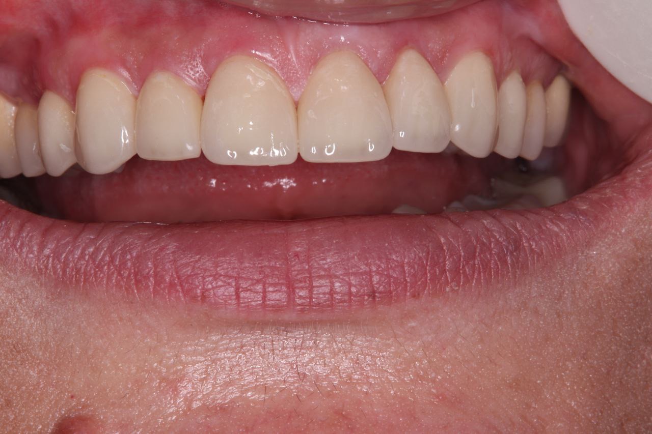 Установлены шесть виниров на передние зубы — от клыка до клыка